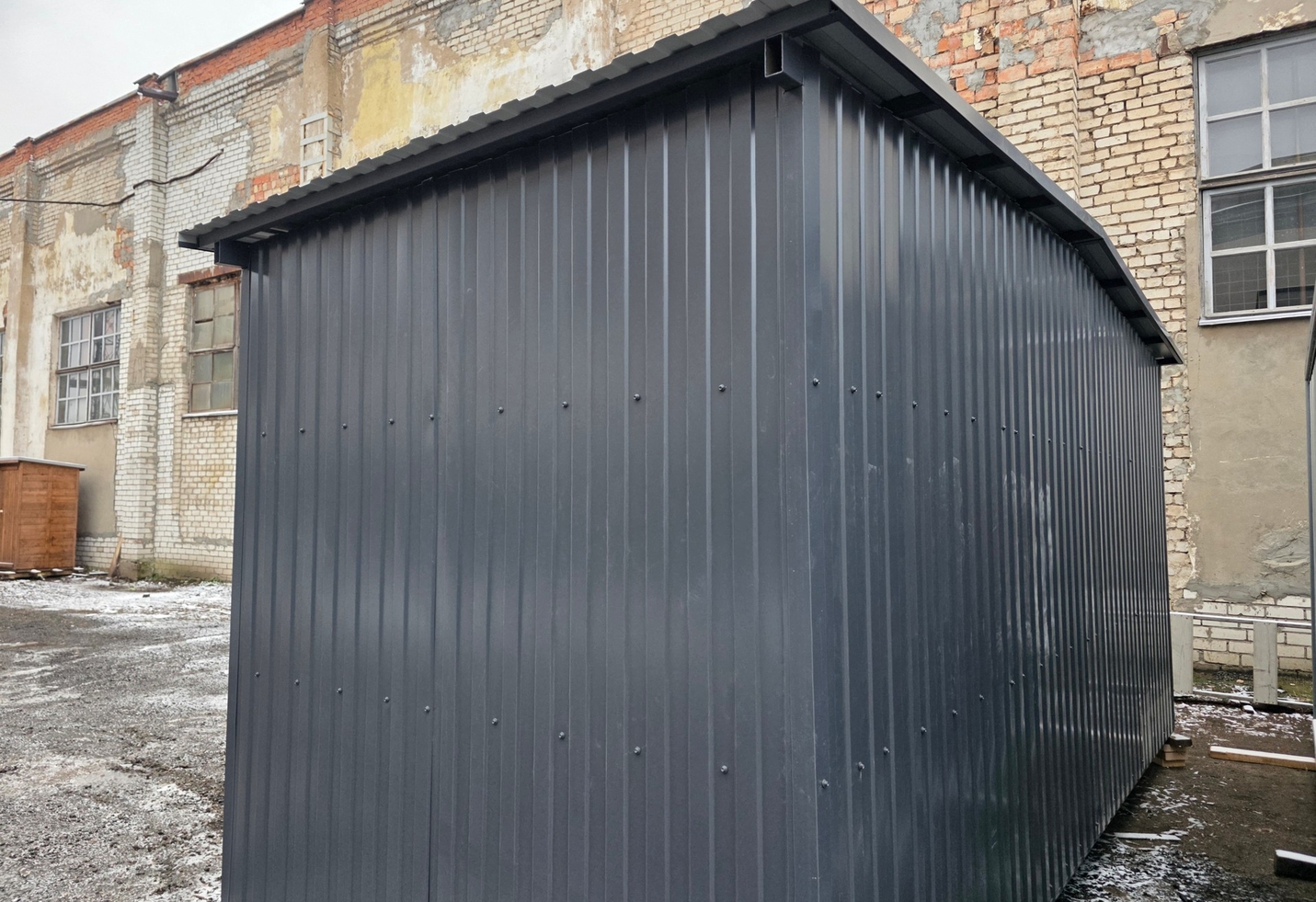 Наша организация изготавливает легкие хозяйственные блоки с каркасом из профильной трубы без утепления, которые можно использовать в качестве дровника или места для хранения инвентаря.